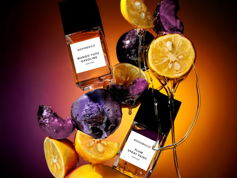 Mango Yuzu • Gasoline bursts open with vibrant mango, zesty yuzu, and luminous fruits, unfolding into a sensual heart of jasmine tea, iris, and lily-of-the-valley — where sweetness meets structure in a bold, magnetic rhythm. Grounded in smoky woods, leather, and vetiver, the composition ignites with a provocative gasoline accord, creating a hypnotic contrast that feels both raw and irresistibly refined.